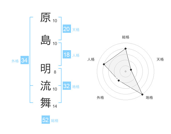 原島 明流舞さんの総格は52画の4点!