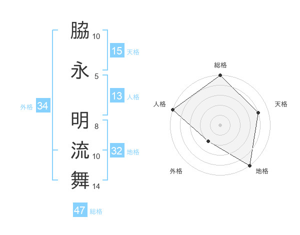 脇永 明流舞さんの総格は47画の5点!