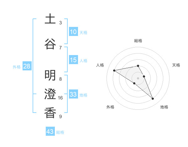 土谷 明澄香さんの総格は43画の2点