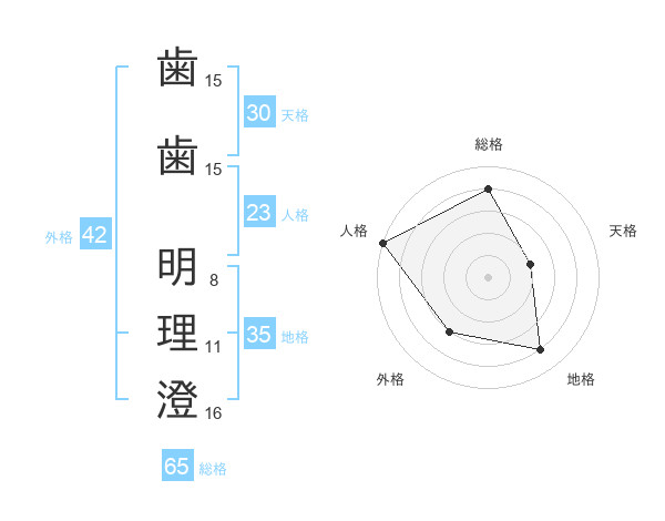 歯歯 明理澄さんの総格は65画の4点!