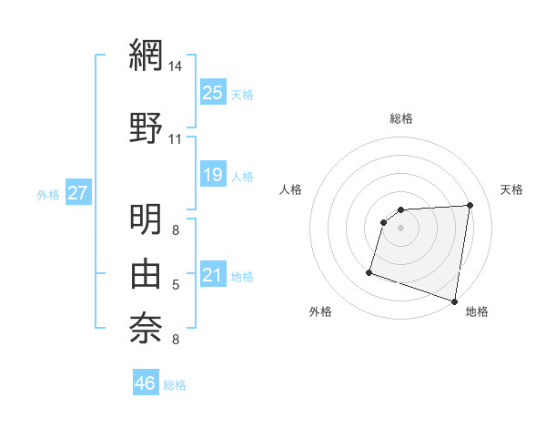 網野 明由奈さんを姓名の画数から五運を鑑定
