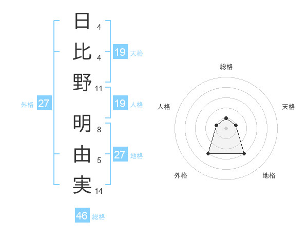日比野 明由実さんを姓名の画数から五運を鑑定