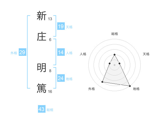新庄 明篤さんの総格は43画の2点!