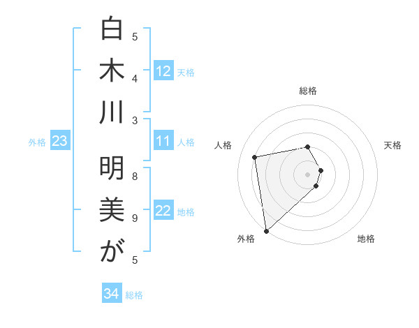 白木川 明美がさんを姓名の画数から五運を鑑定