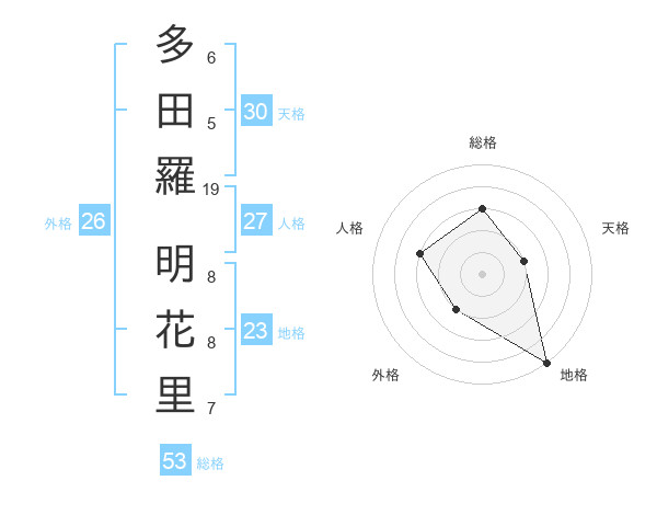 多田羅 明花里さんを姓名の画数から五運を鑑定