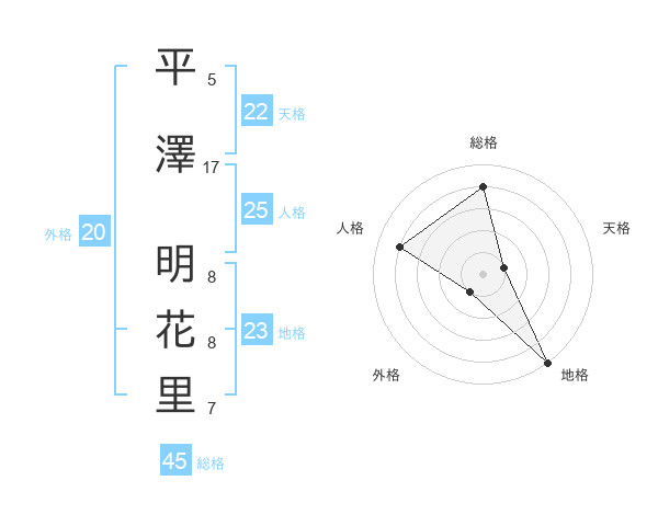 平澤 明花里さんを姓名の画数から五運を鑑定