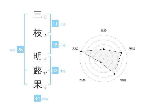 三枝 明蕗果さんの地格は33画の4点!