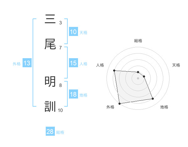 三尾 明訓さんを姓名の画数から五運を鑑定