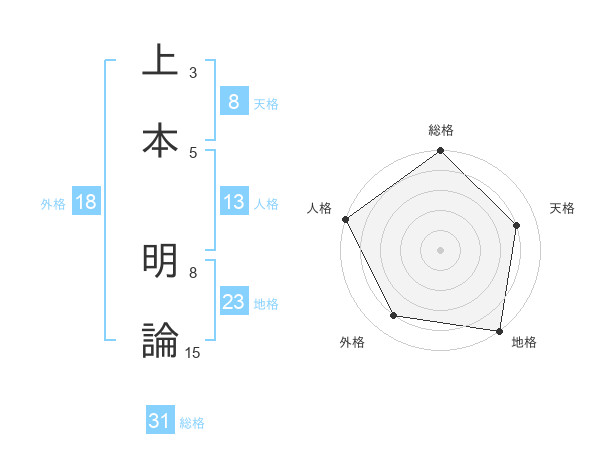 上本 明論さんの総格は31画の5点!