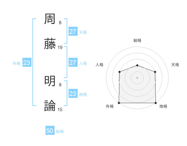 周藤 明論さんの総格は50画の2点!