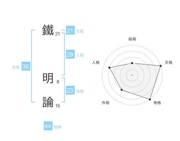 鐵 明論さんの総格は44画の2点!