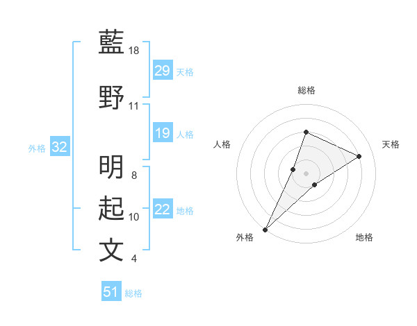 藍野 明起文さんを姓名の画数から五運を鑑定