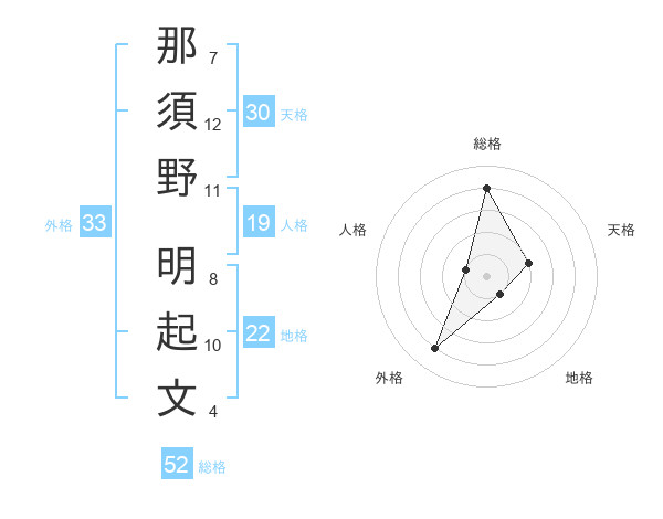 那須野 明起文さんを姓名の画数から五運を鑑定
