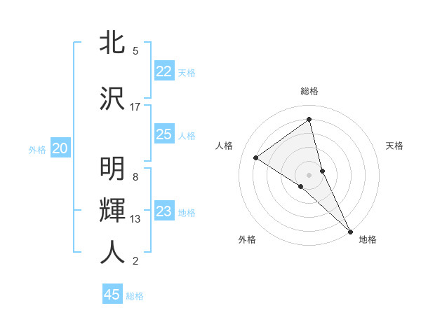北沢 明輝人さんを姓名の画数から五運を鑑定