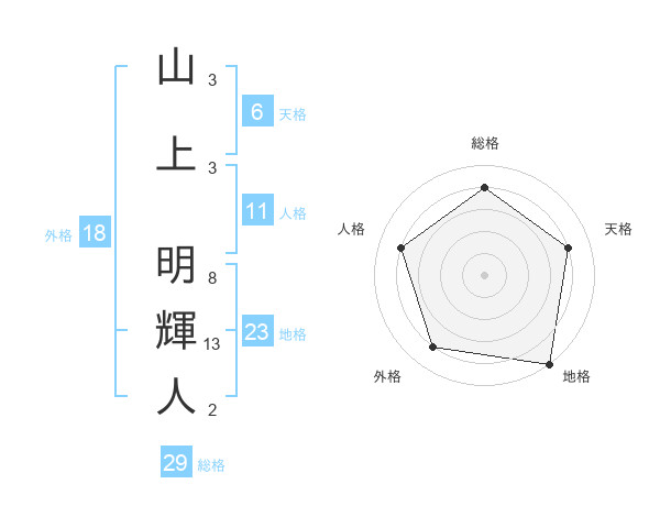 山上 明輝人さんを姓名の画数から五運を鑑定