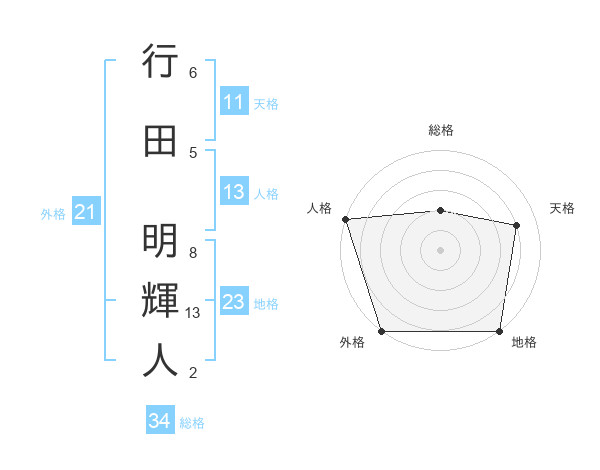 行田 明輝人さんの人格は13画の5点!