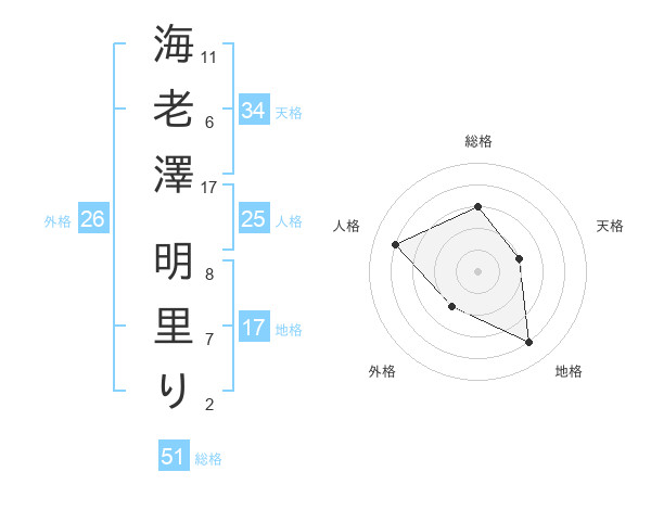 海老澤 明里りさんの地格は17画の4点!