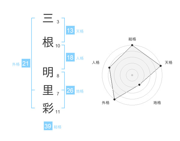 三根 明里彩さんを姓名の画数から五運を鑑定