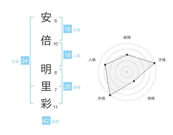 安倍 明里彩さんを姓名の画数から五運を鑑定
