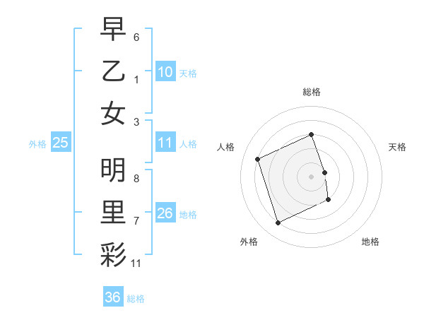 早乙女 明里彩さんを姓名の画数から五運を鑑定