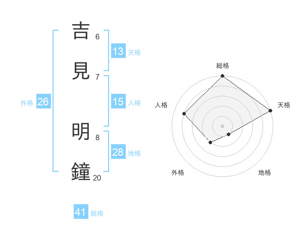 吉見 明鐘さんの天格は13画の5点!