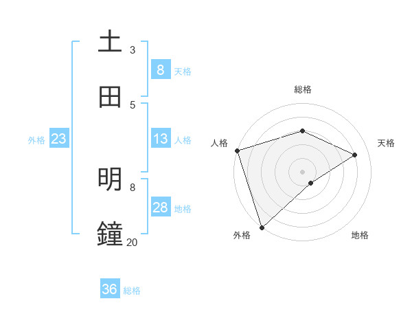 土田 明鐘さんを姓名の画数から五運を鑑定