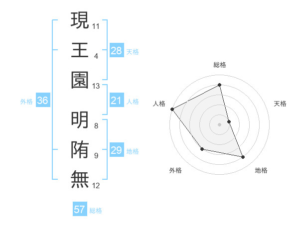 現王園 明陏無さんを姓名の画数から五運を鑑定