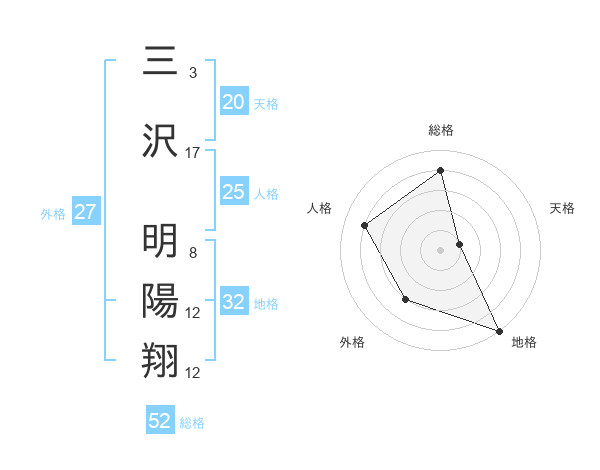 三沢 明陽翔さんの総格は52画の4点!