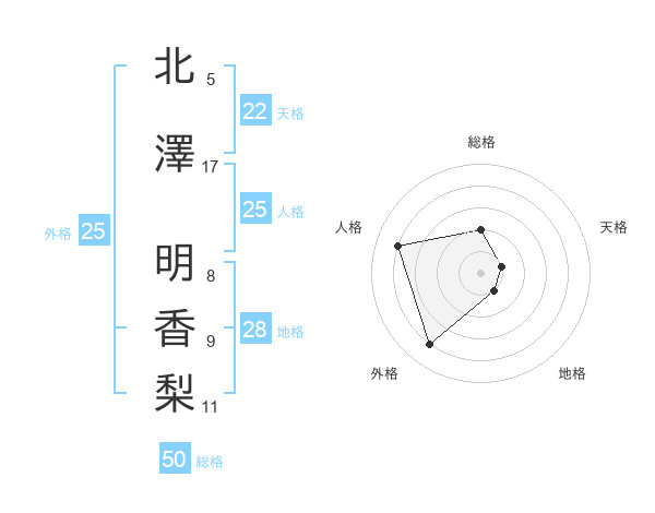 北澤 明香梨さんの総格は50画の2点!