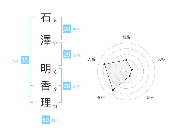 石澤 明香理さんの総格は50画の2点!