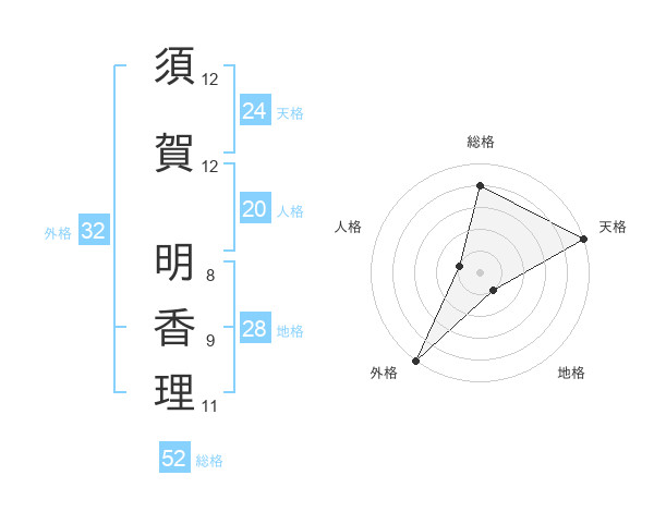 須賀 明香理さんの天格は24画の5点!