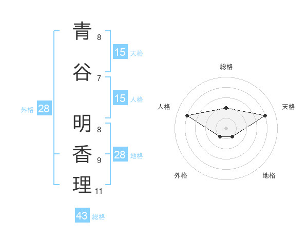 青谷 明香理さんの天格は15画の4点!