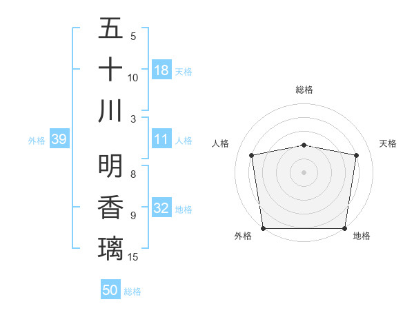 五十川 明香璃さんの外格は39画の5点!