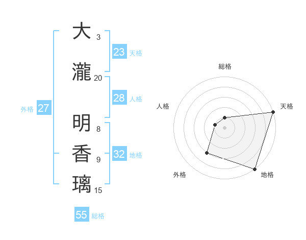 大瀧 明香璃さんを姓名の画数から五運を鑑定