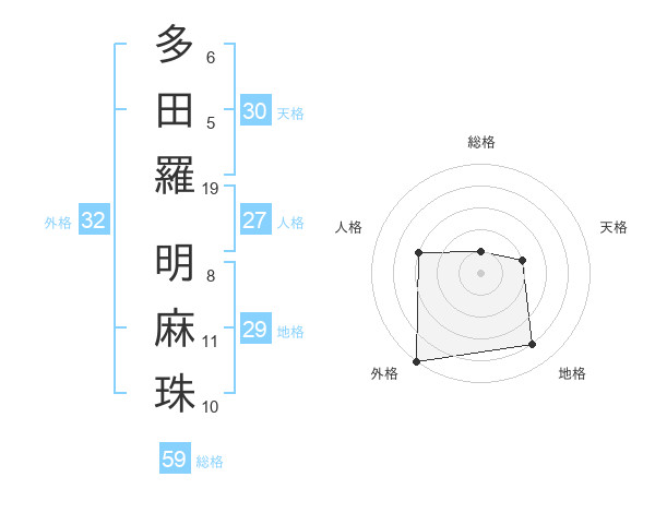 多田羅 明麻珠さんを姓名の画数から五運を鑑定