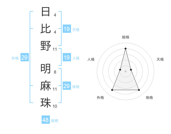 日比野 明麻珠さんを姓名の画数から五運を鑑定