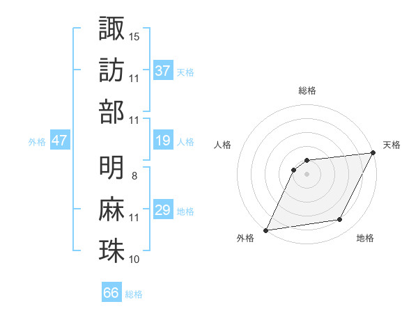 諏訪部 明麻珠さんの外格は47画の5点!