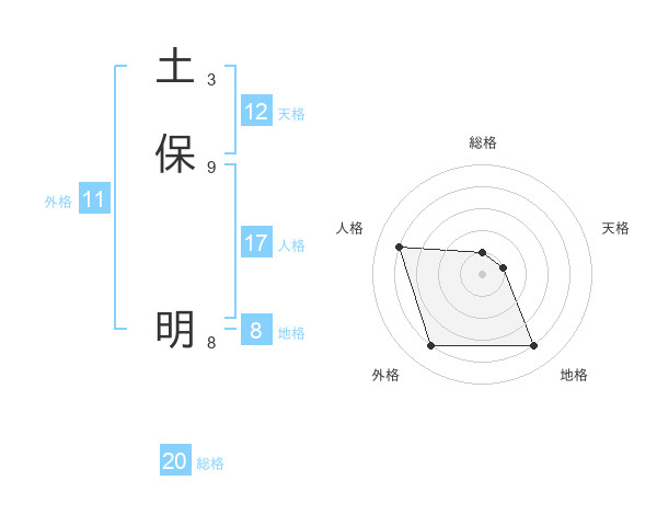 土保 明さんの総格は20画の1点!