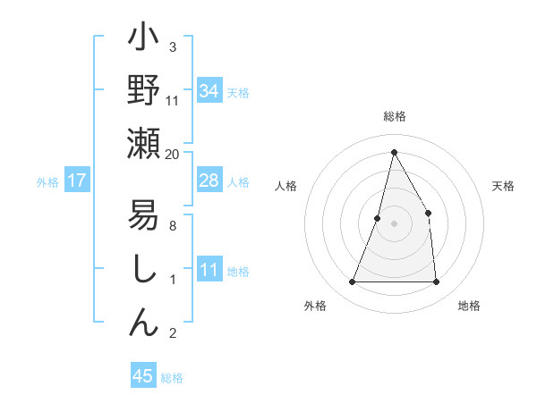 小野瀬 易しんさんを姓名の画数から五運を鑑定