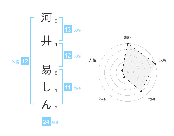 河井 易しんさんの天格は13画の5点!