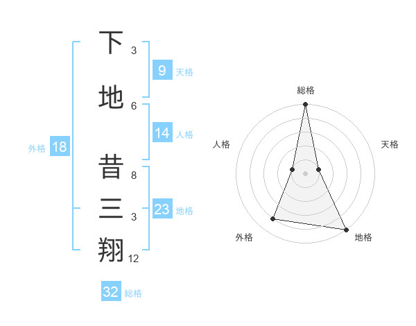 下地 昔三翔さんを姓名の画数から五運を鑑定