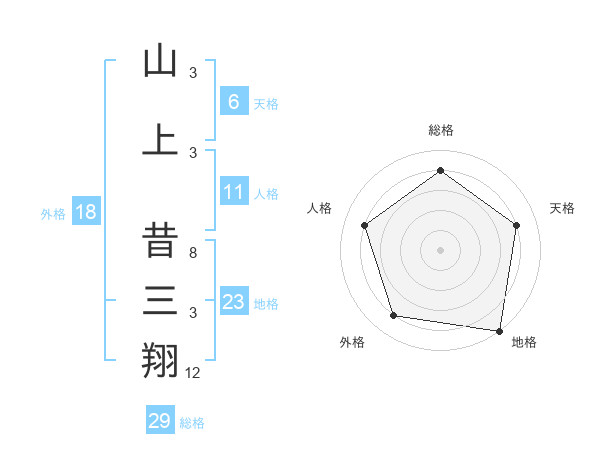 山上 昔三翔さんを姓名の画数から五運を鑑定