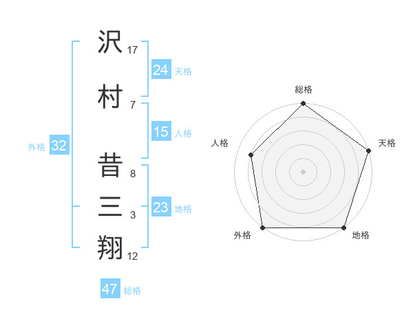 沢村 昔三翔さんを姓名の画数から五運を鑑定