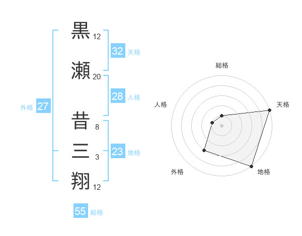 黒瀬 昔三翔さんを姓名の画数から五運を鑑定