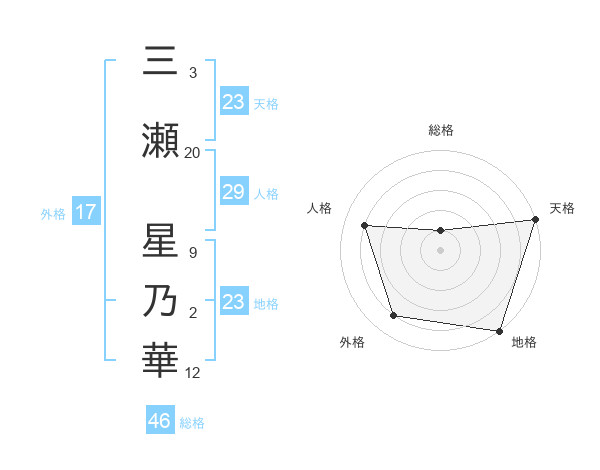 三瀬 星乃華さんの天格は23画の5点!
