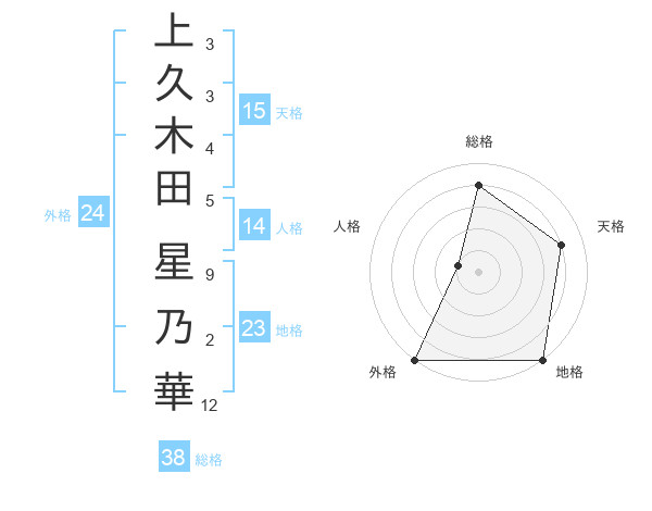 上久木田 星乃華さんの総格は38画の4点!