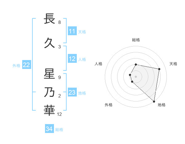 長久 星乃華さんの外格は22画の1点!