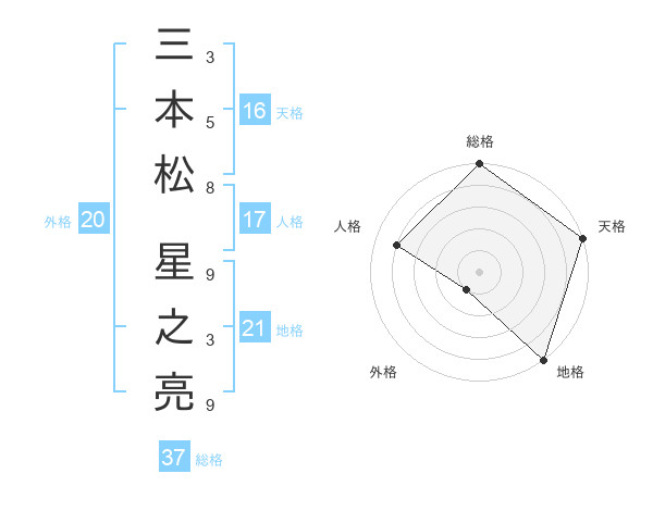 三本松 星之亮さんの総格は37画の5点!