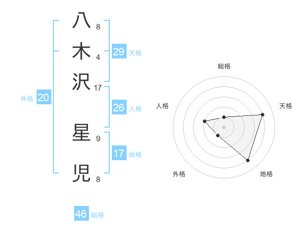 八木沢 星児さんを姓名の画数から五運を鑑定