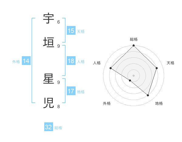 宇垣 星児さんを姓名の画数から五運を鑑定